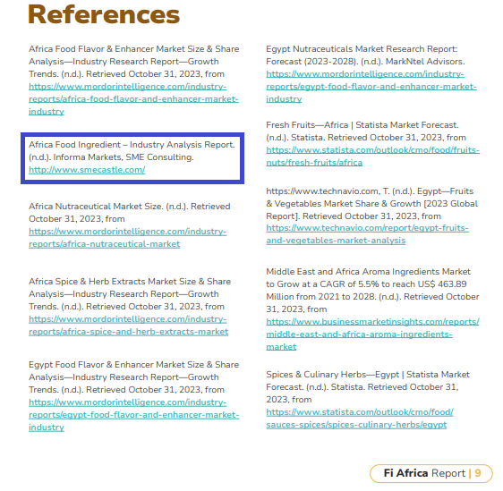Our expertise is benchmarked and validated at the highest levels of the global food industry. We are proud that our deep-seated market insights were officially recognized and utilized as a trusted source for the authoritative FI Global (Food Ingredients Global) Market Report: The Food Ingredient Market in Egypt and Africa.